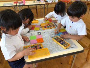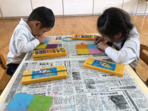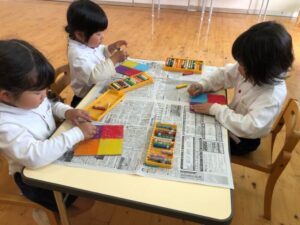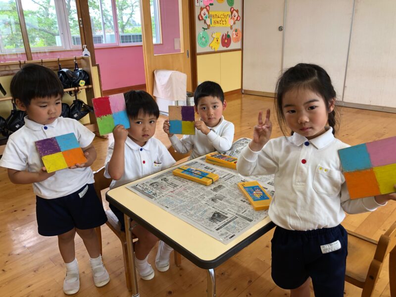 製作をしました!! 2021/04/23 藤組 いつもは白い画用紙ですが、今日はなんと!木の板に色塗りをしました🎵 四角のお部屋にそれぞれ色を塗ります✨✨ はみ出さないように・・・ じゃーん!!!! さぁ、なにができあがるのかな~? とってもわくわくしている藤ぐみさんです🎵完成をお楽しみに😊 共有: Facebook で共有するにはクリックしてください (新しいウィンドウで開きます) Facebook クリックして X で共有 (新しいウィンドウで開きます) X いいね:いいね 読み込み中… コメントを残す コメントをキャンセル入力エリアすべてが必須項目です。メールアドレスが公開されることはありません。内容をご確認の上、送信してください。 次回のコメントで使用するためブラウザーに自分の名前、メールアドレス、サイトを保存する。 上に表示された文字を入力してください。 Δ