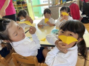 最後に秋のお野菜レンコンやさつまいもでお野菜スタンプ!ぺたぺた~!!