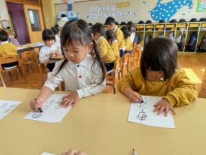 先生が書いた文字の上を丁寧にクレヨンでなぞっていきました!