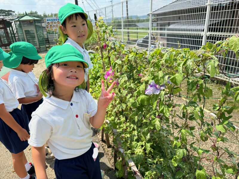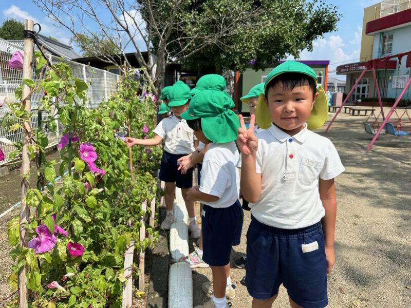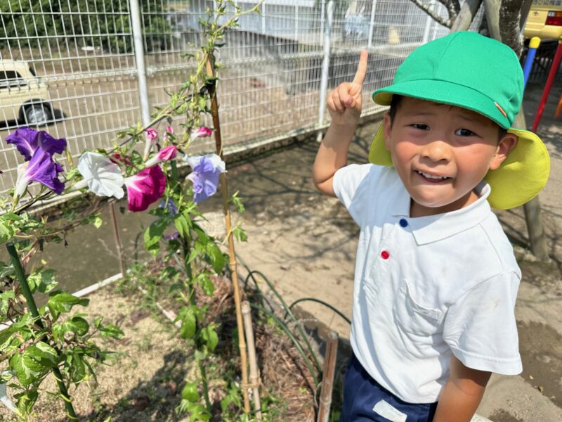 5月に植えた園庭の朝顔もとてもきれいに咲きました。
