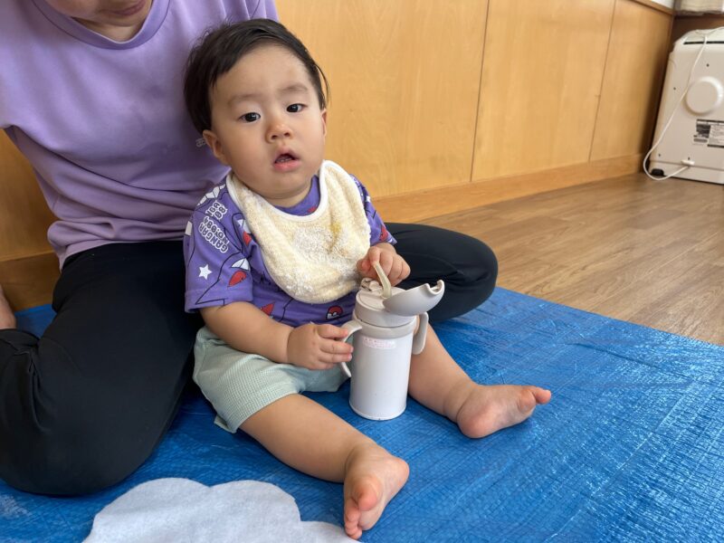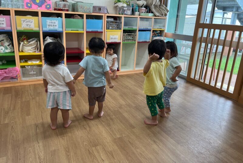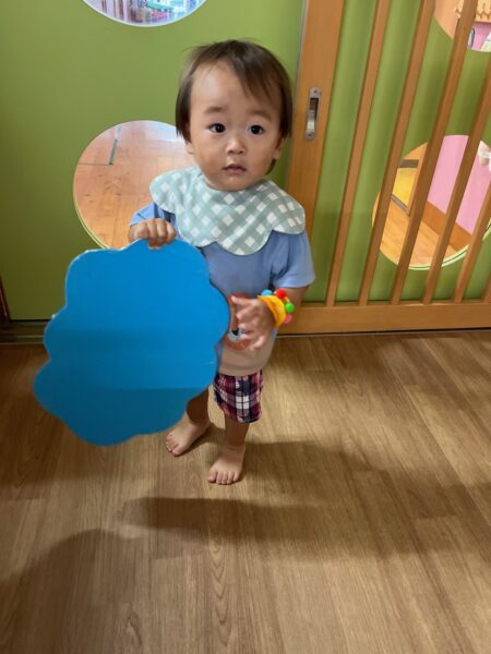 みんな大好きな”アンパンマン”の音楽が流れてくる方(ラジカセの方)を見ながら