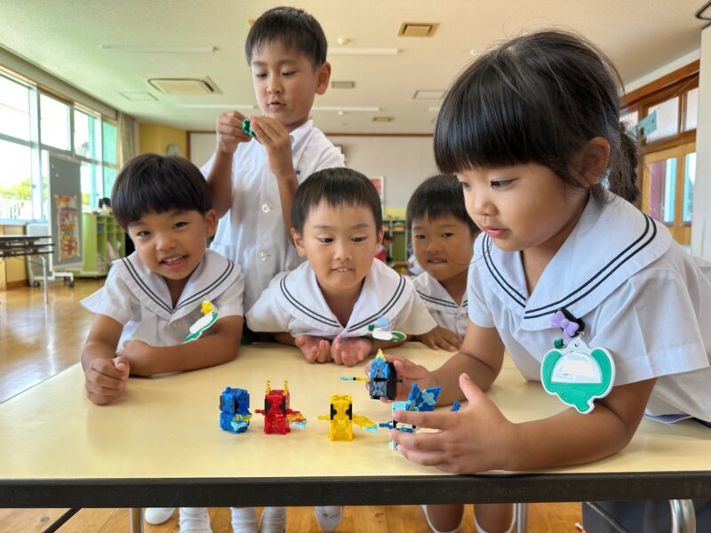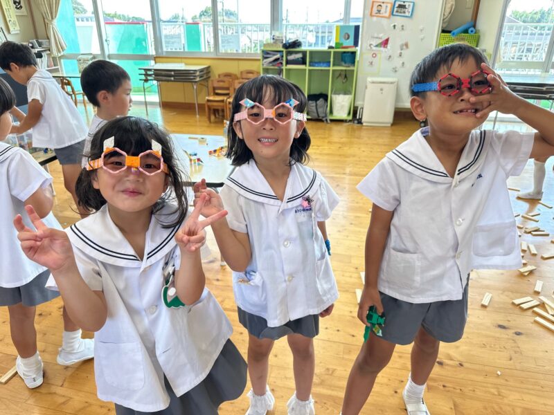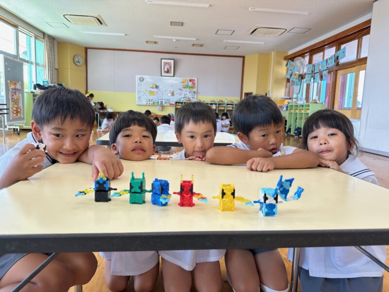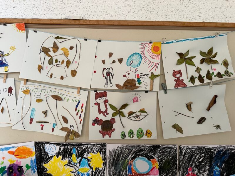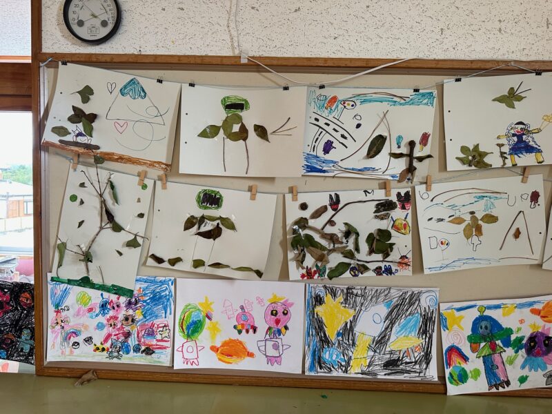 虫に見立てたり、枝と葉っぱを合わせて木を作ったり