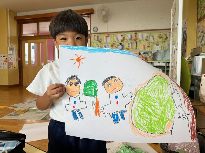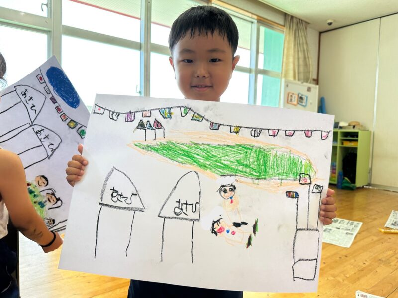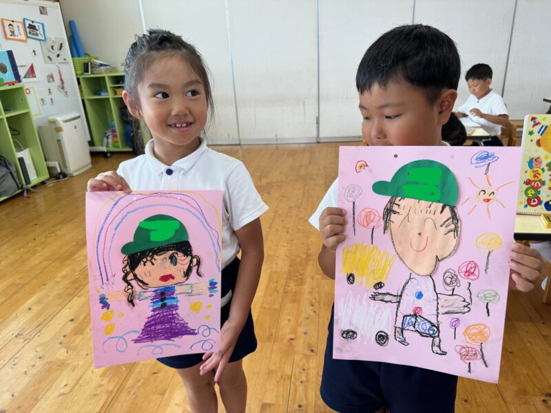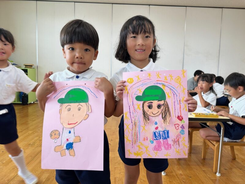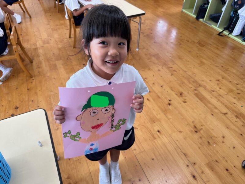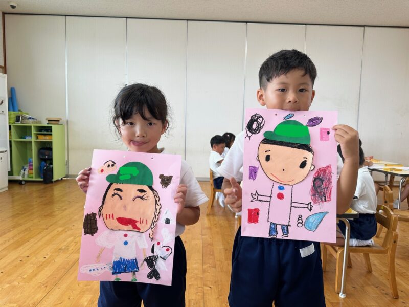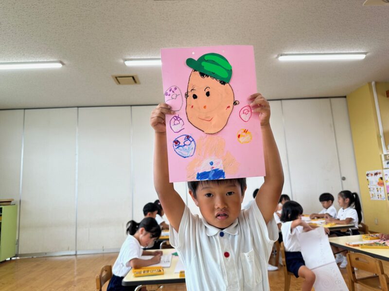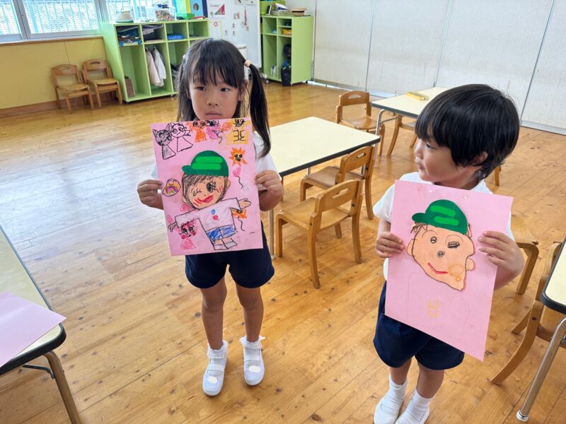 運動会の看板に貼っていた似顔絵の周りには、大好きな物や