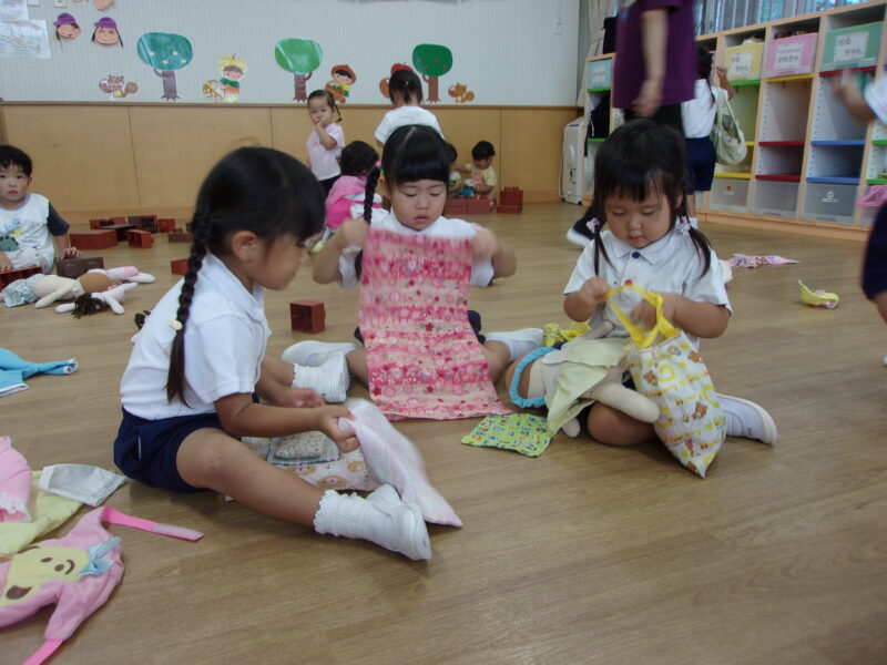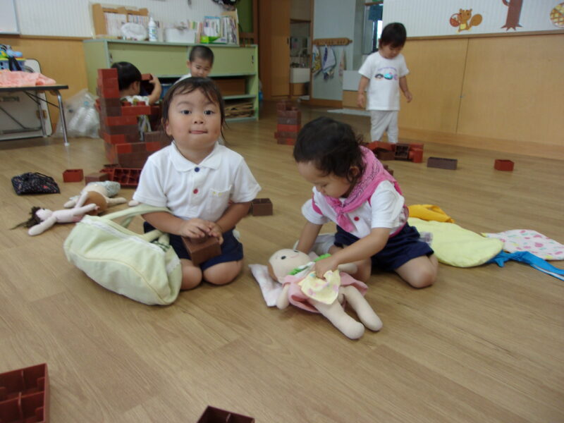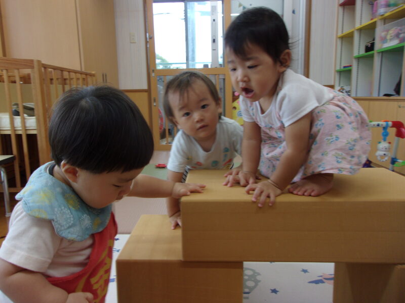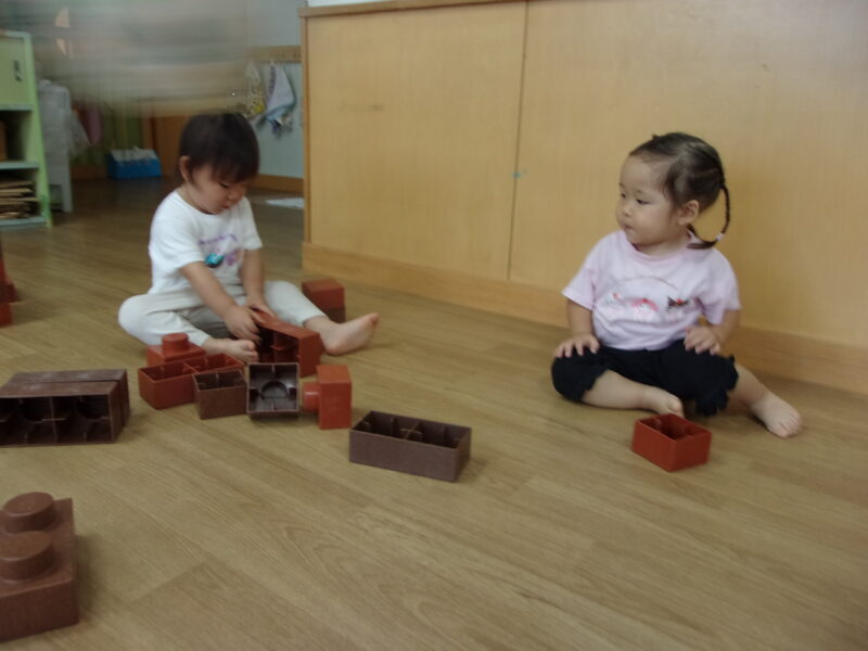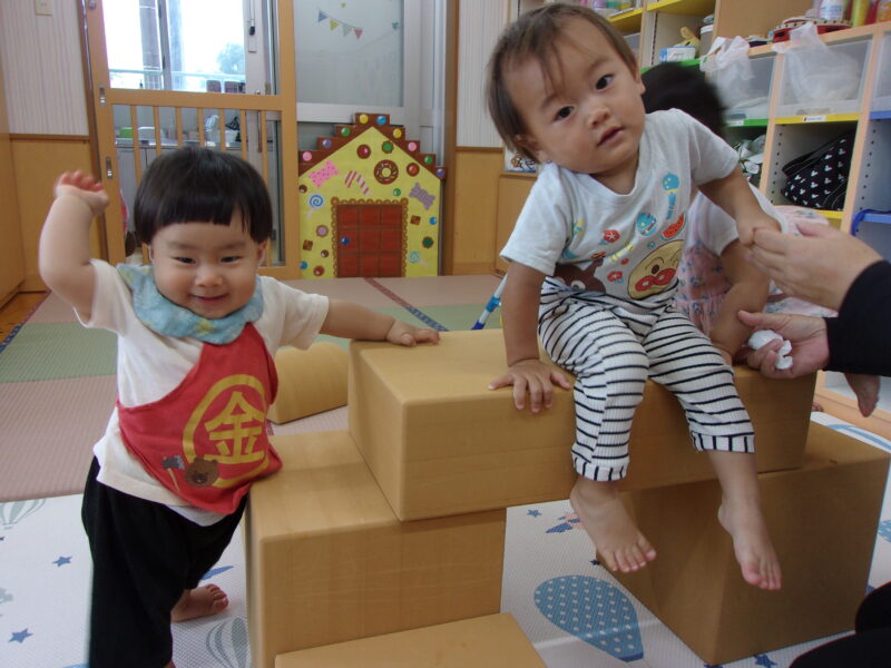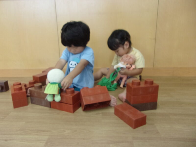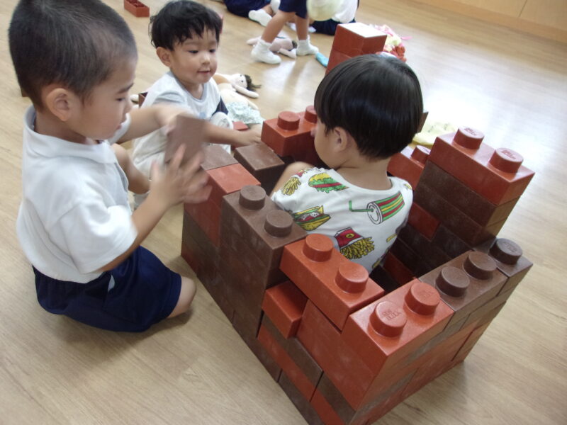 大型ブロックやぬいぐるみで遊んだしゃら組・れんげ組さん😊