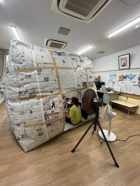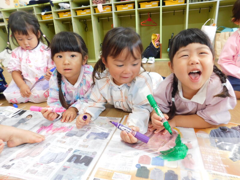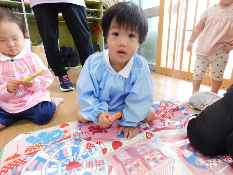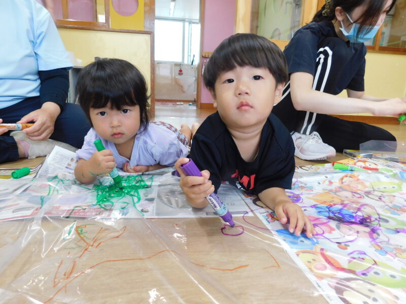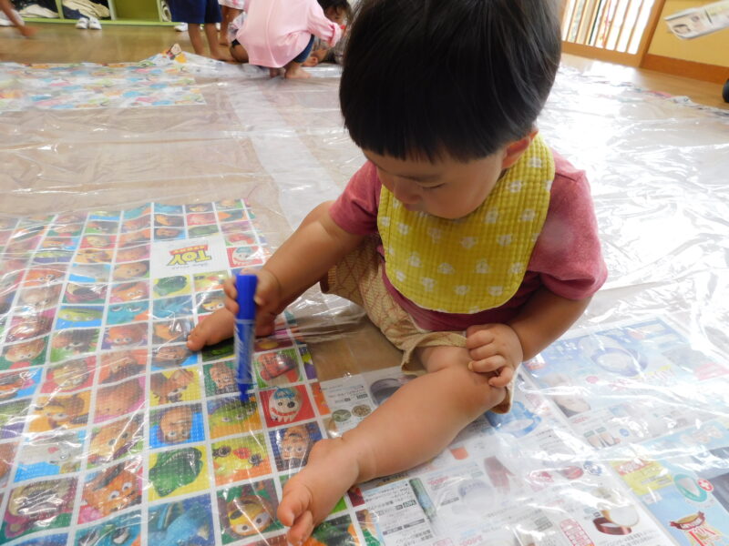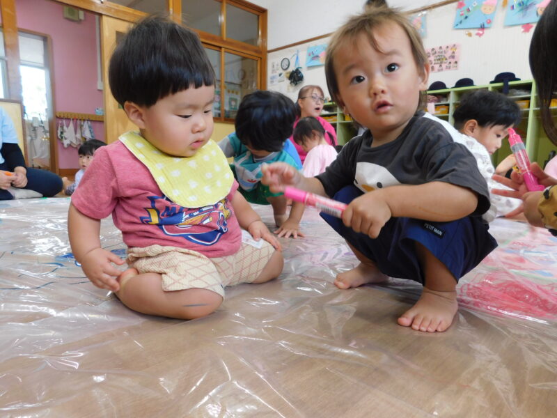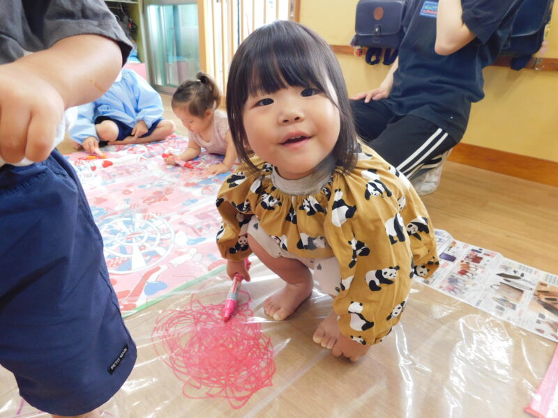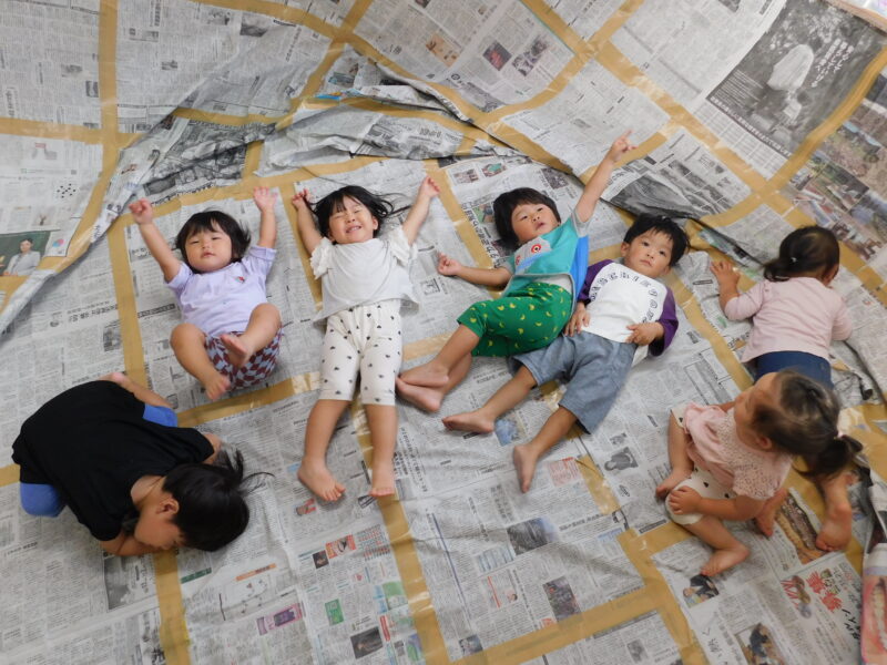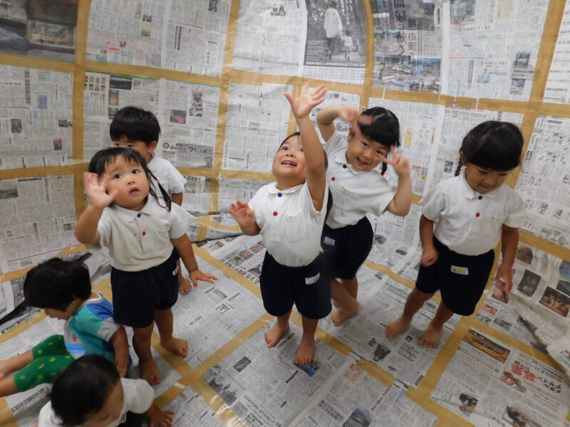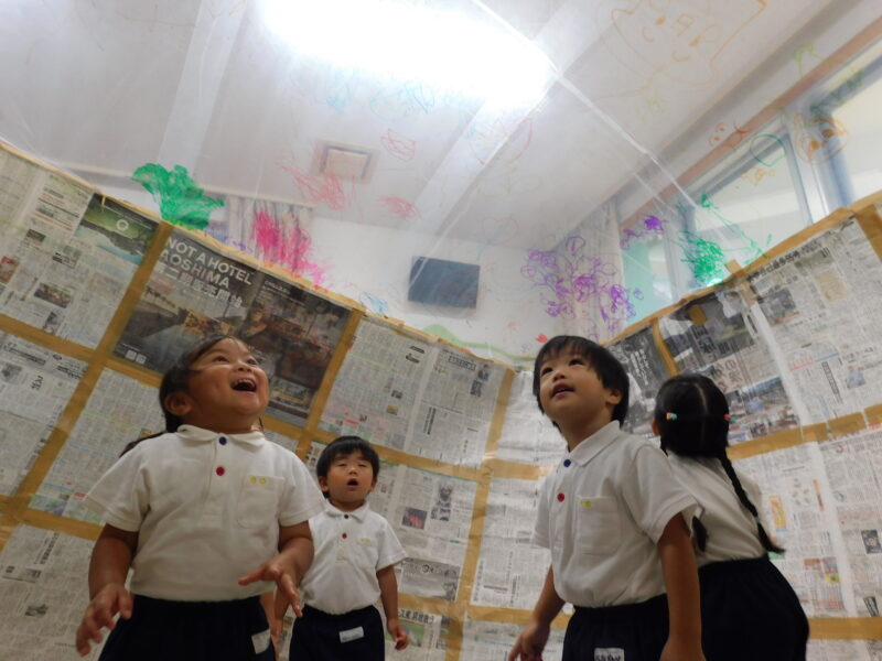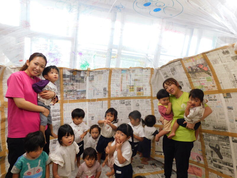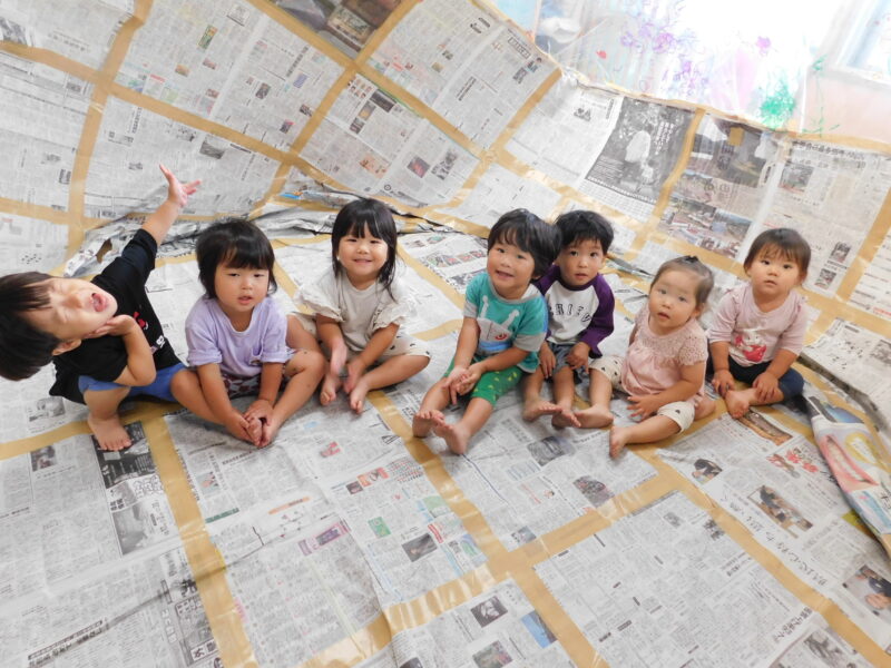 新聞紙ドームで遊んだよ♪ 2025/10/21 蓮華組・沙羅組・無憂華組 ナーサリーさんで新聞紙ドームを作りました☆ ビニールにみんなで絵を描きました。 新聞紙ドームが完成しました!! 新聞紙ドームの中に入ってみました。 天井に自分たちの描いた絵を見つけて嬉しそうです🎵 猪股🐣・長友さ🚗・安達🌼 共有: Facebook で共有するにはクリックしてください (新しいウィンドウで開きます) Facebook クリックして X で共有 (新しいウィンドウで開きます) X いいね:いいね 読み込み中… コメントを残す コメントをキャンセル入力エリアすべてが必須項目です。メールアドレスが公開されることはありません。内容をご確認の上、送信してください。 次回のコメントで使用するためブラウザーに自分の名前、メールアドレス、サイトを保存する。 上に表示された文字を入力してください。 Δ