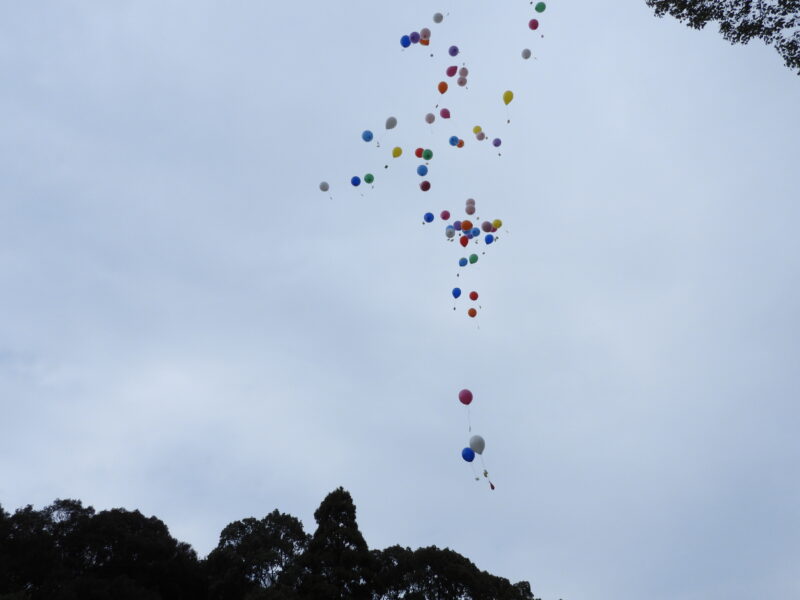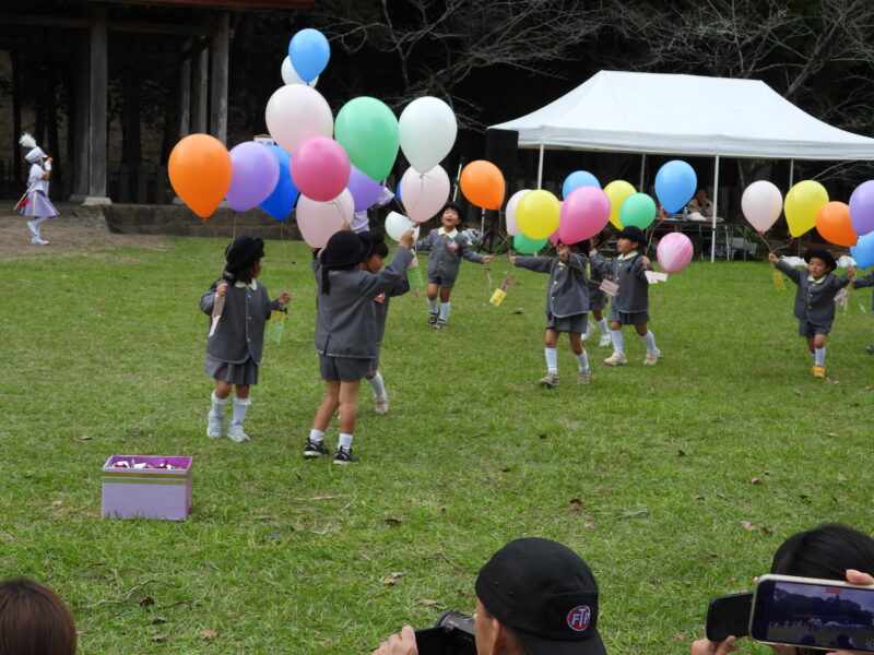 銀杏組さんは古墳まつりでマーチングデビューでした。銀杏組のお友だちが飛ばしてくれた風船は、空高く舞い上がりましたよ。