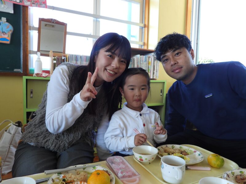お父さんお母さんの前で、うれし恥ずかしそうにしながら、