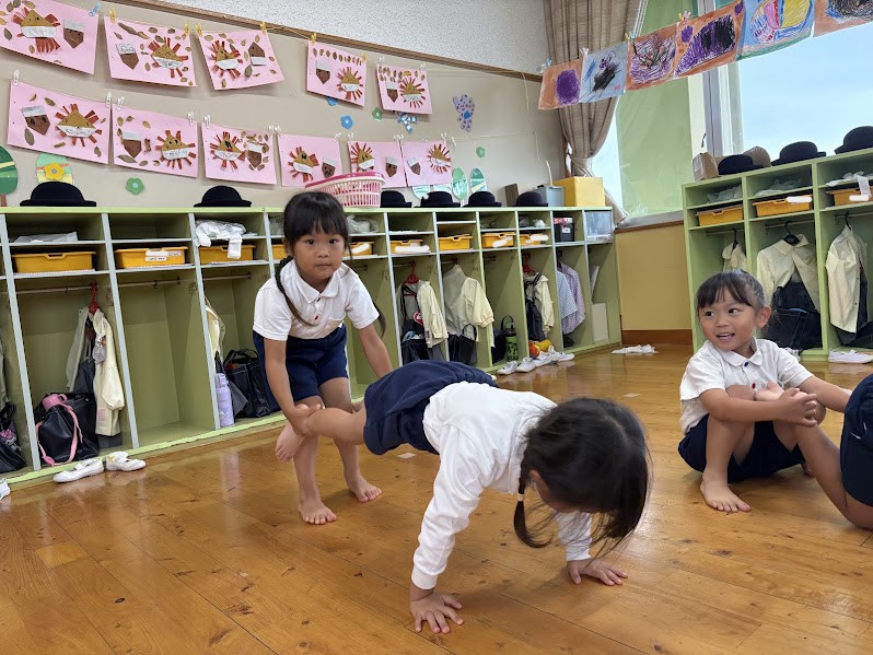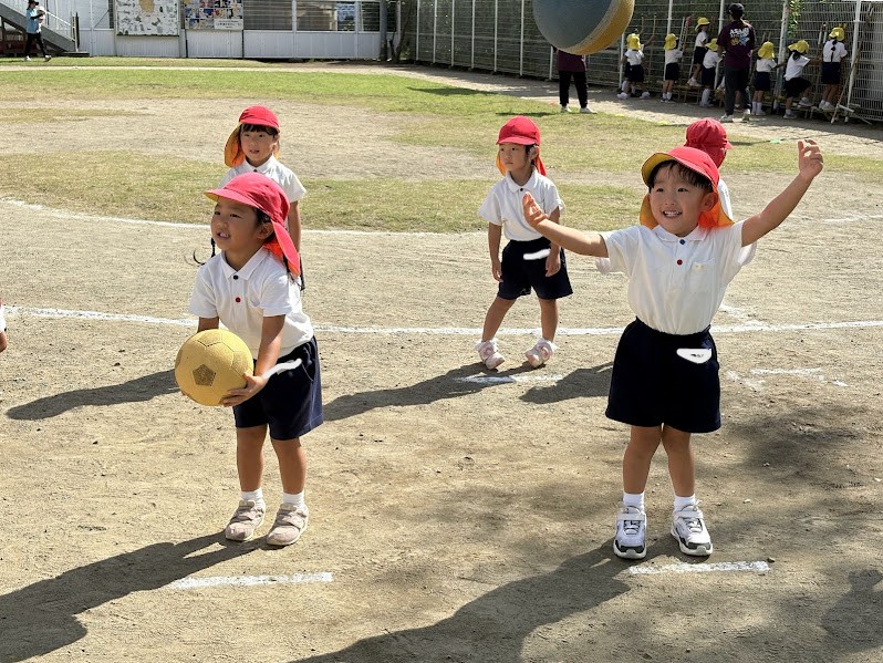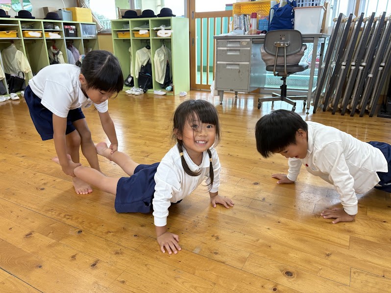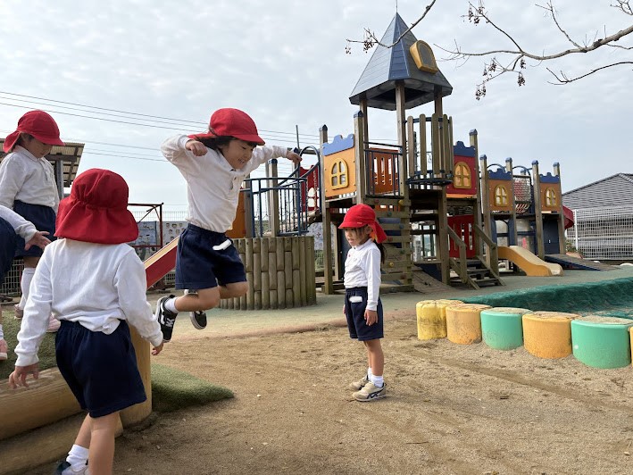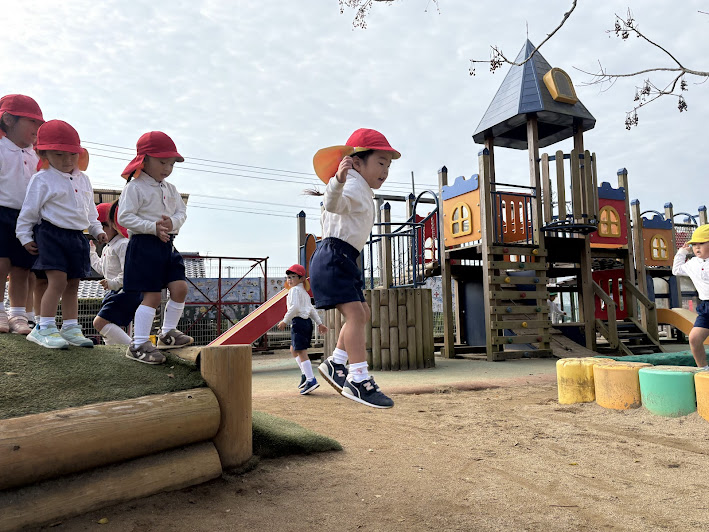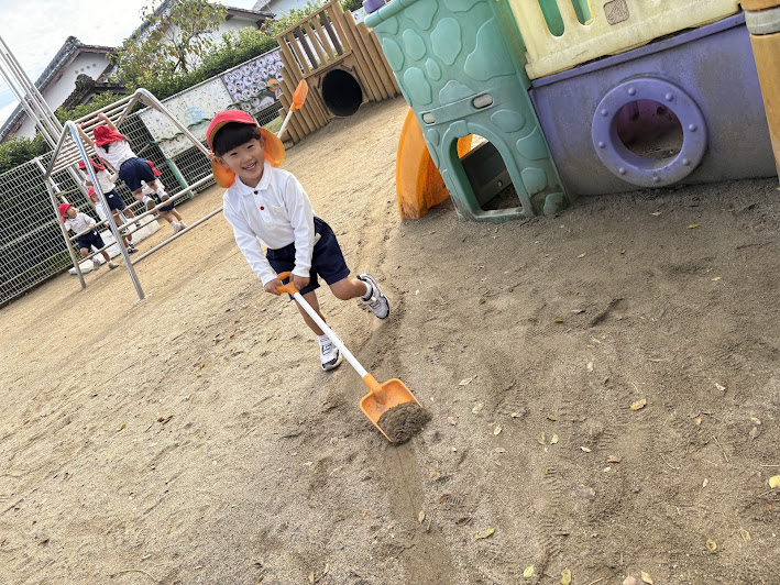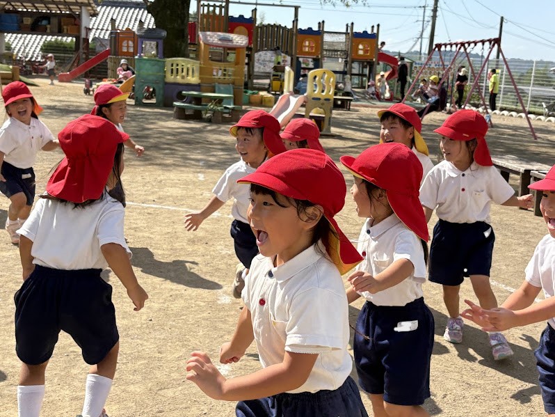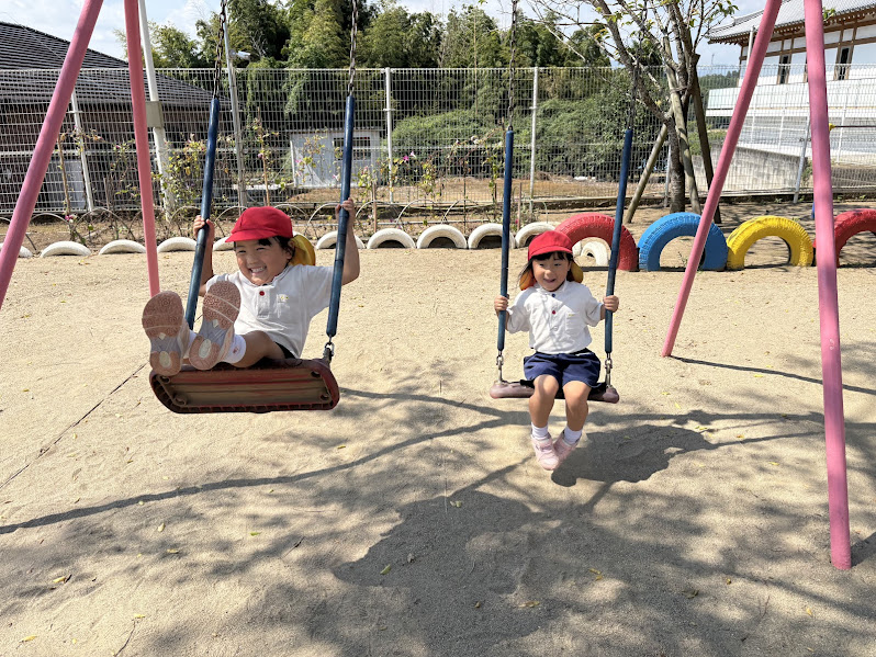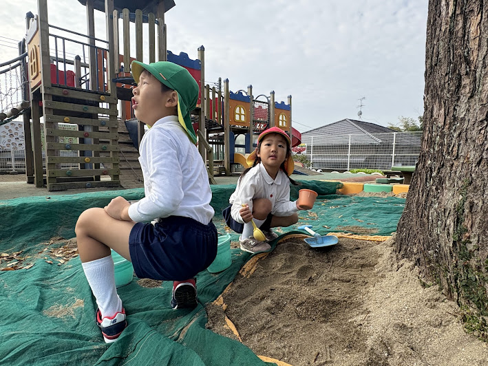 秋の気温になって、過ごしやすくなり、子どもたちは鬼ごっこやしっぽ取りをして、元気に走り回ったり、遊具で遊んだり、お外遊びを楽しんでいますよ~