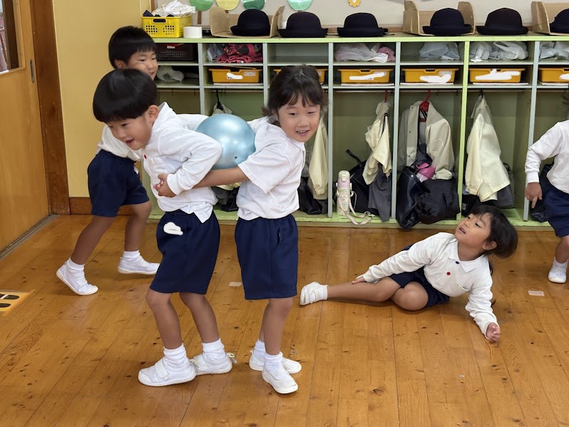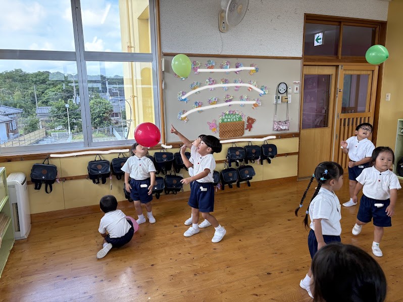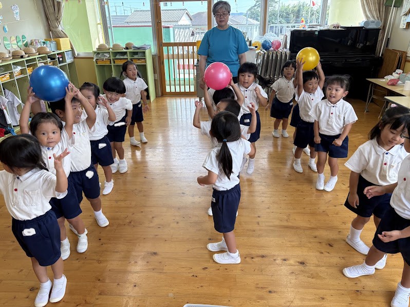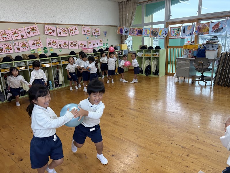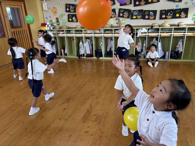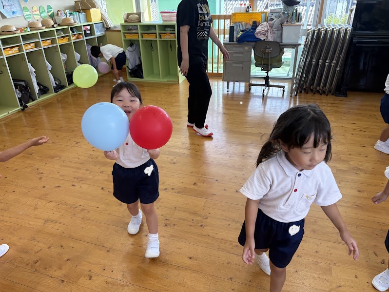体を動かしてあそんだり、風船ゲームをしたり、笑顔いっぱいで過ごしています!