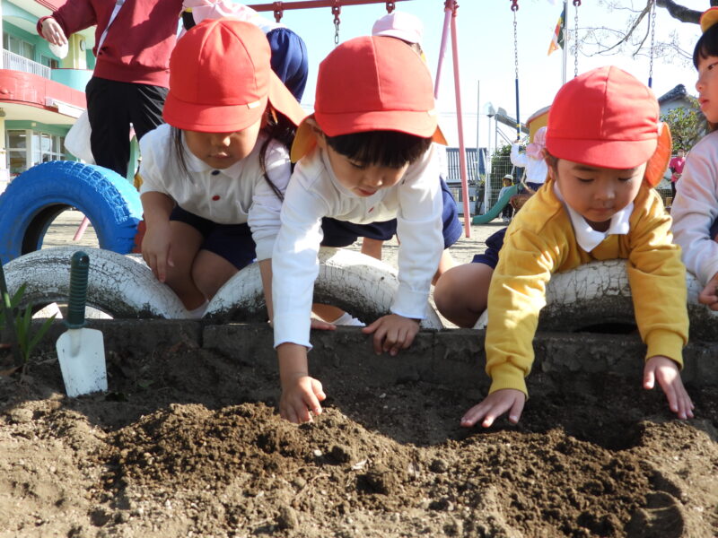 🌷チューリップの球根を植えました🌷 2025/11/27 全園児 今日は、みんなでチューリップの球根を植えました。 植え方のお話しをきいて、 「どれにしようかなぁ・・・」と球根を真剣に選んで…😄 そっと穴に埋めて、優しく土をかぶせます。 ナーサリーのお友だちも、上手に植えてくれました✨ 最後にお当番さんがお水をあげてくれました。 何色のチューリップが咲くかなぁ?🌷 みんなで大切にお世話をしたいと思います😊 春になるのが楽しみですね🎵 共有: Facebook で共有するにはクリックしてください (新しいウィンドウで開きます) Facebook クリックして X で共有 (新しいウィンドウで開きます) X いいね:いいね 読み込み中… コメントを残す コメントをキャンセル入力エリアすべてが必須項目です。メールアドレスが公開されることはありません。内容をご確認の上、送信してください。 次回のコメントで使用するためブラウザーに自分の名前、メールアドレス、サイトを保存する。 上に表示された文字を入力してください。 Δ