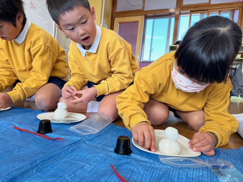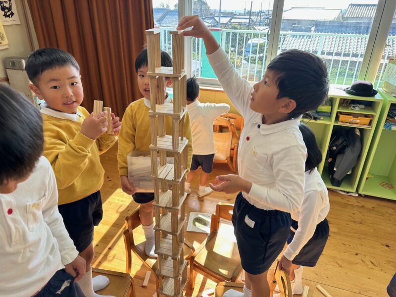 みんなで息をそろえてバランスよくどんどん上に積みます