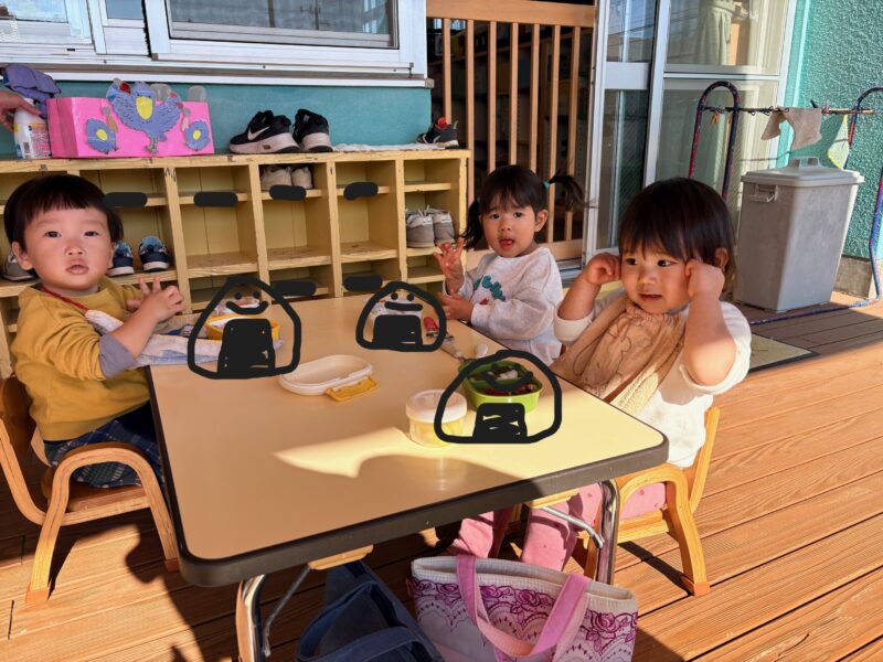 朝のおやつ前に手洗いをすると「わ~い!お弁当だぁ🎵」と、お弁当を食べるのをとっても楽しみにしている様子の子どもたちでしたよ😆