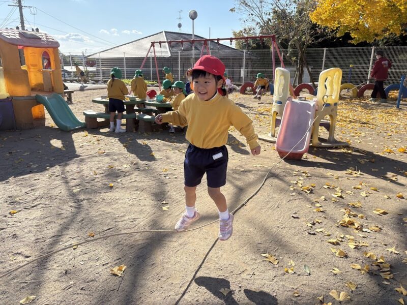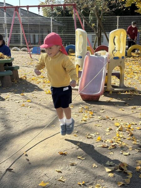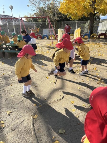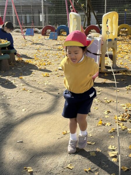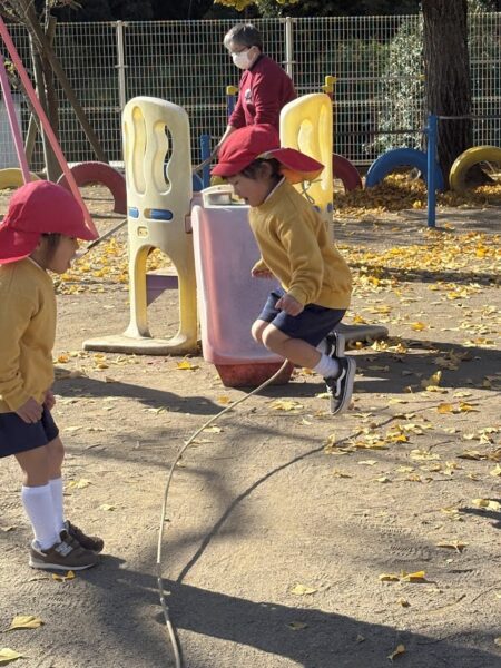憧れの桐組さんが長縄遊びを始めると、銀杏組のお友だちも興味津々に見に来ます。