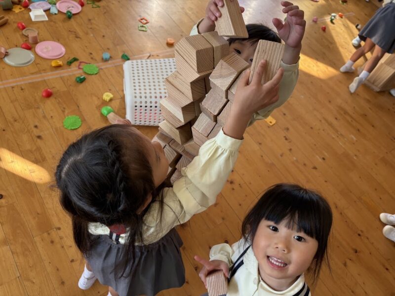 みんなで一つの物を作り上げたり、役があってごっこ遊びが発展していったり。。。