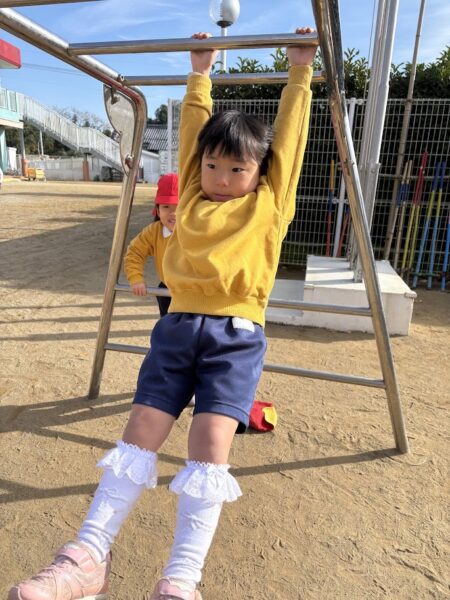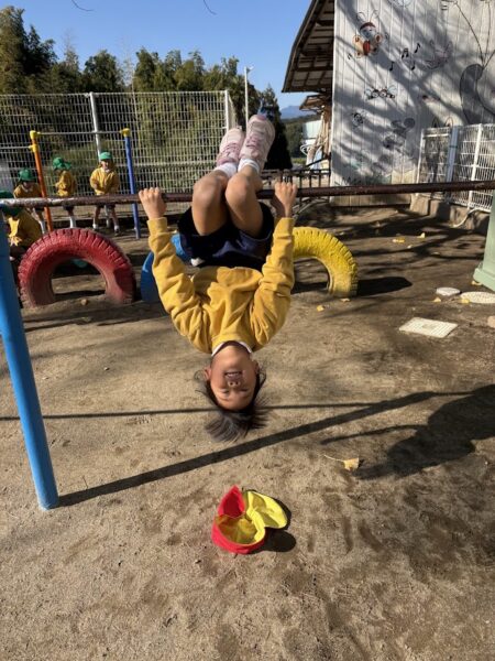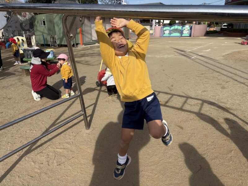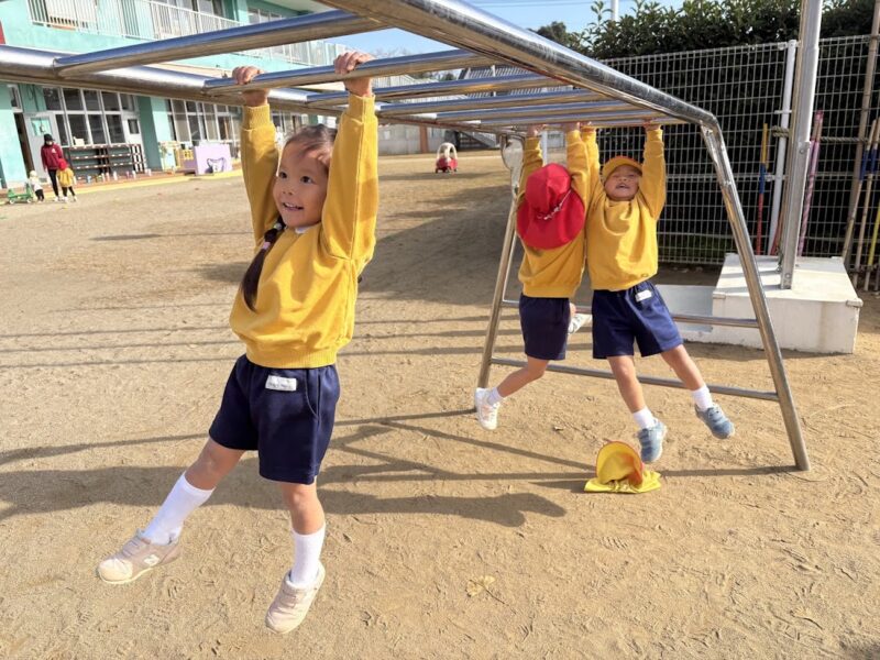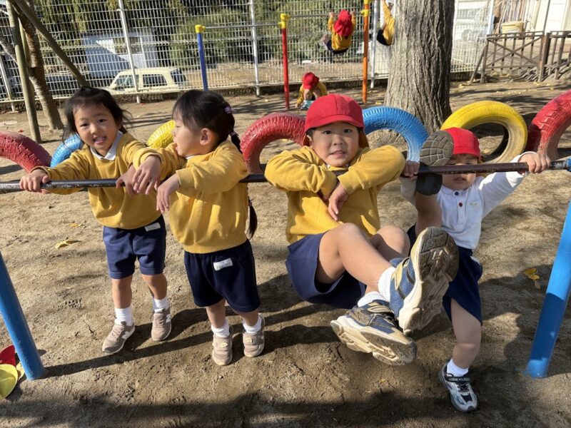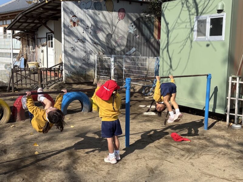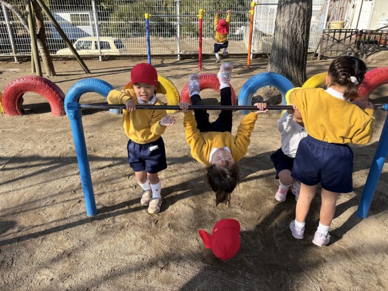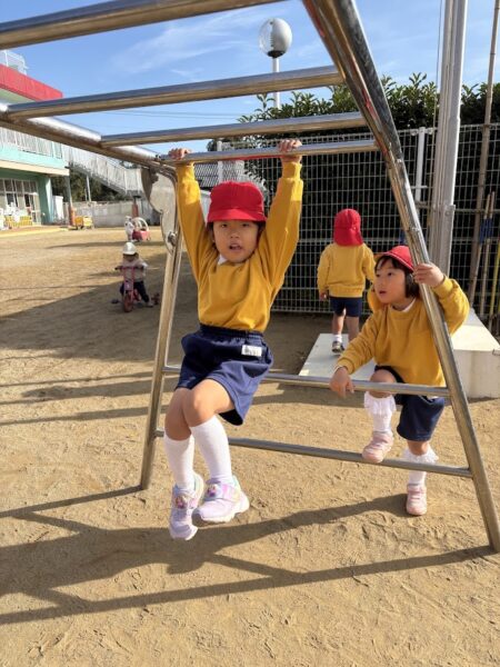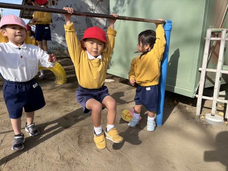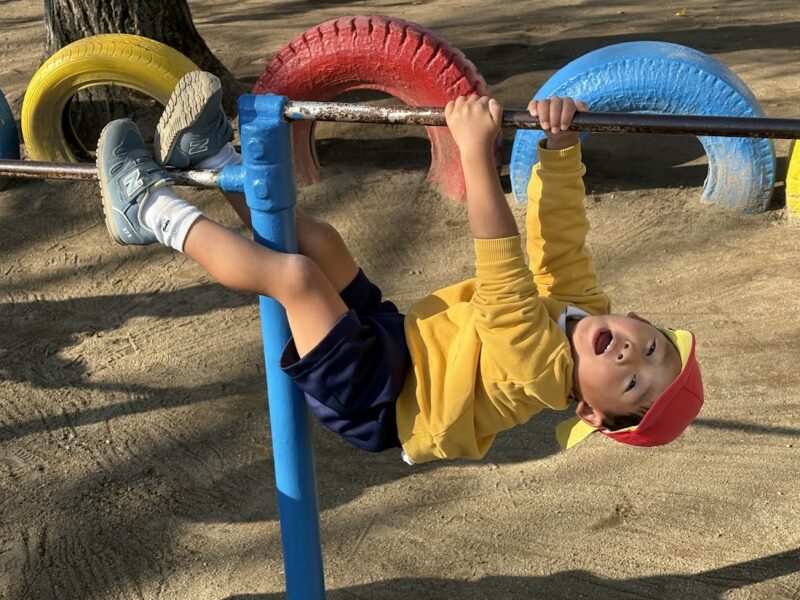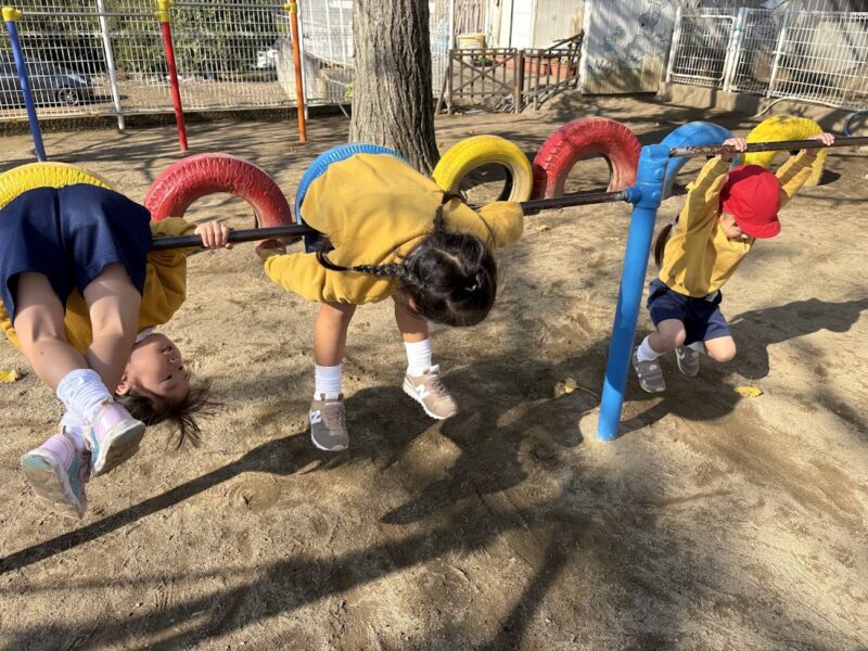 最近、うんていや、鉄棒、タイヤなど、ちょっと難しいことにどんどん挑戦している銀杏組さん。