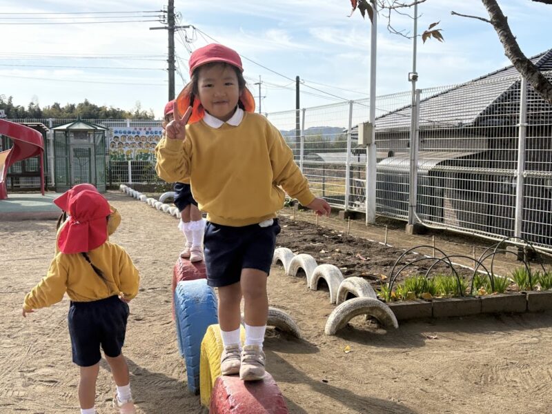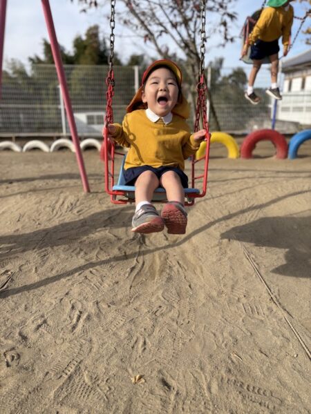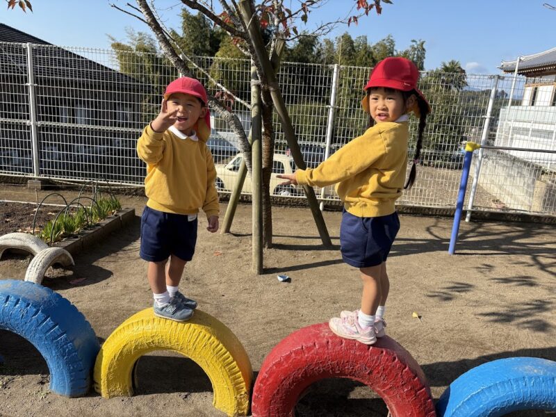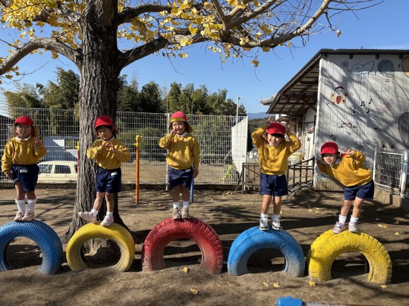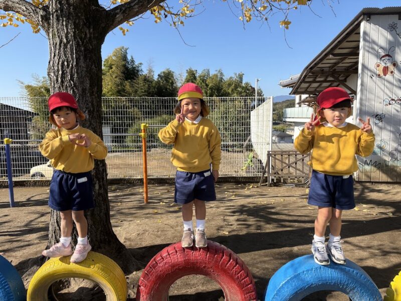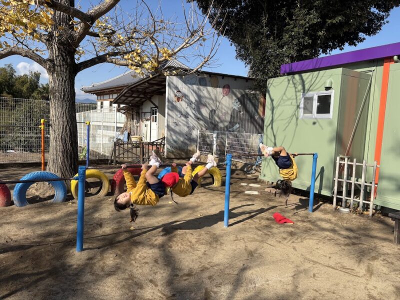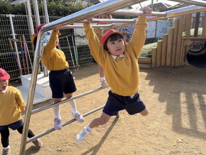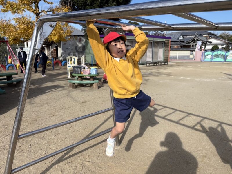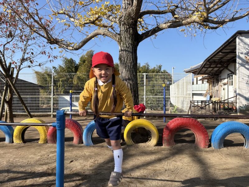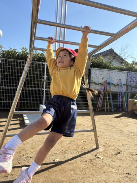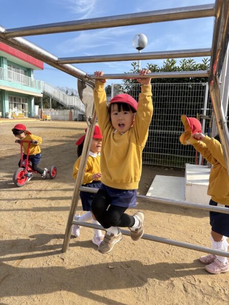 最近、うんていや、鉄棒、タイヤなど、ちょっと難しいことにどんどん挑戦している銀杏組さん。