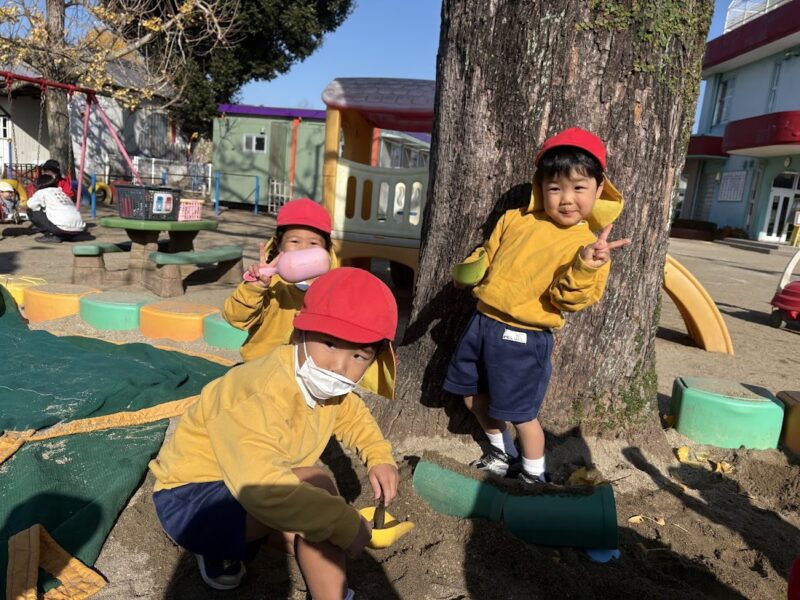 寒くなっても、お外遊びが大好きな銀杏組さんです。