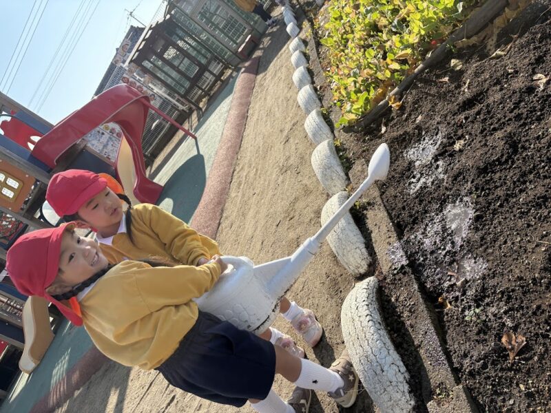 チューリップの球根にお水やりをしてくれたお当番さん🎵