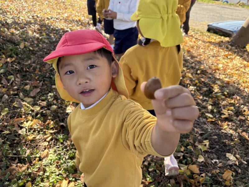 どんぐりや銀杏の葉っぱを集めて「ママにプレゼントする!」とニコニコ😊かわいいですね🧡