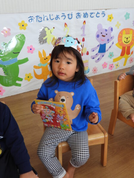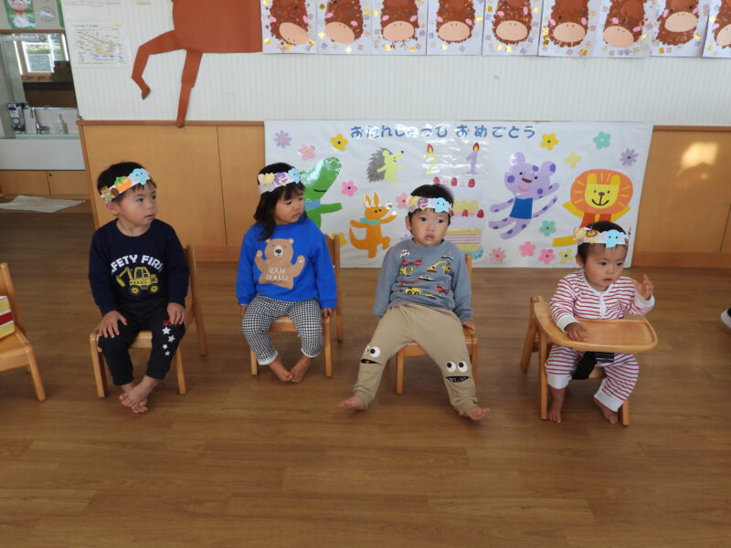 今日は1月のお誕生会が行われました。11月に体調不良で休んでいたお友だちも一緒にお祝いいたしました。