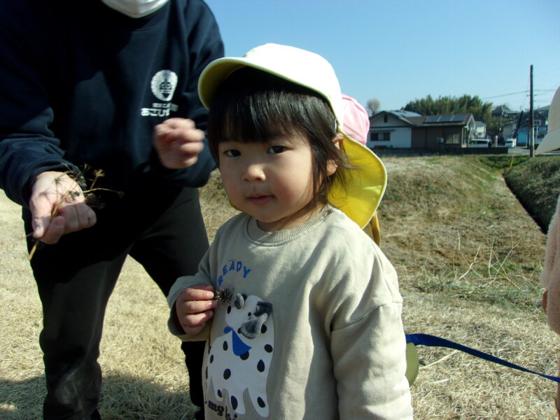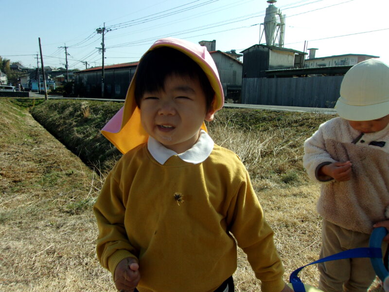 ”ひっつきむし”を発見🫡洋服にくっつけるとニコニコと嬉しそうな子、不思議そうに見ている子、すぐに手で払う子・・・とみんなそれぞれの感性をもっていました😄