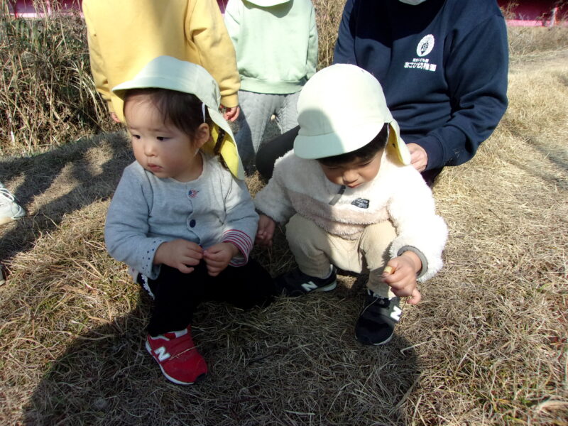 何かイイものを見つけて必死に集めはじめる可愛い子どもたち💕