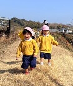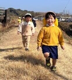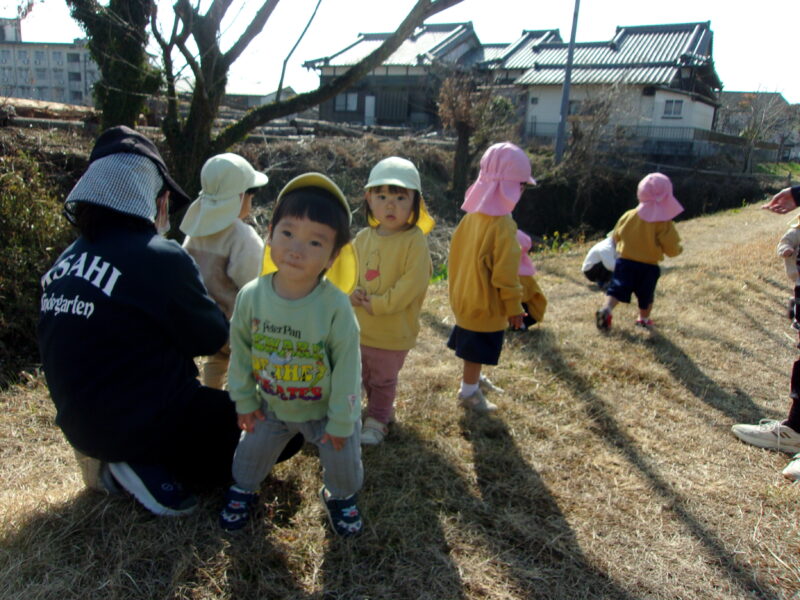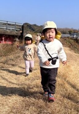 お散歩の通り道を見つけて、みんなで先生のところまで、走ってにこにこの子どもたちでした😊