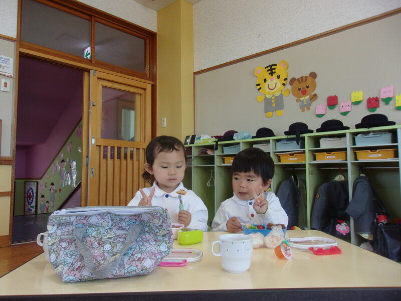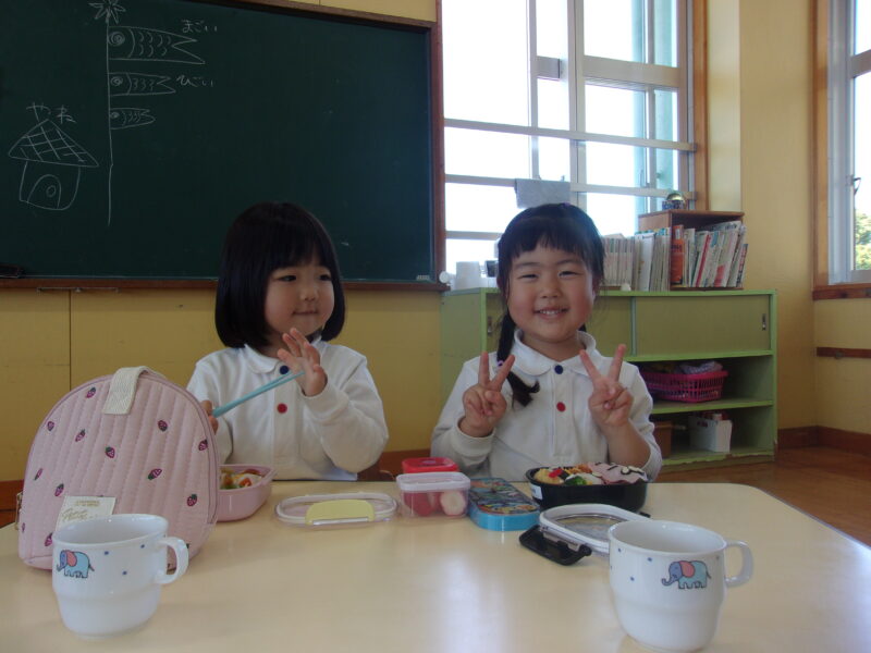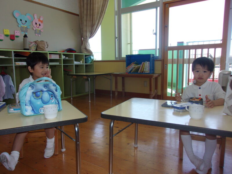 幼稚園に帰って、お弁当🍙!!