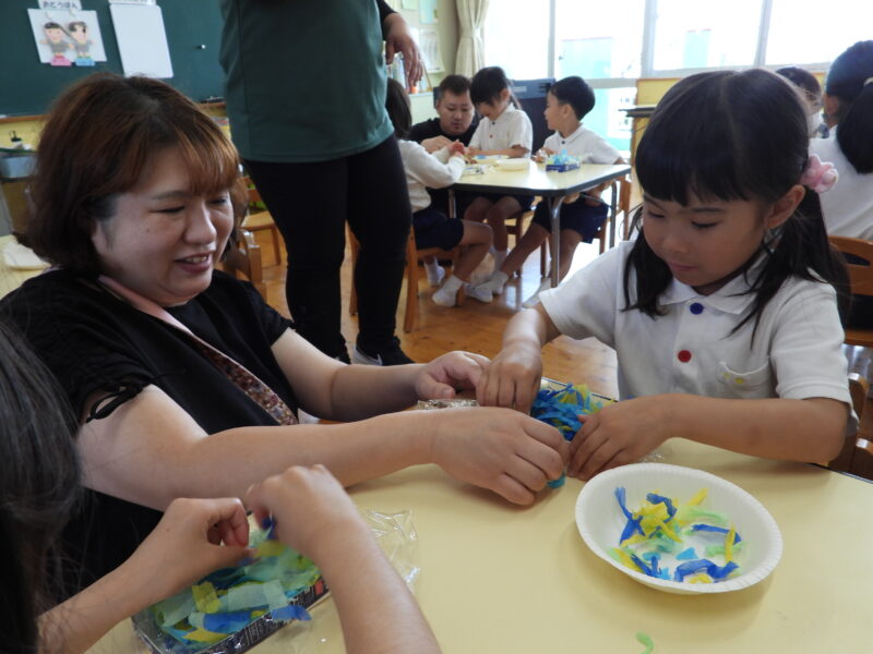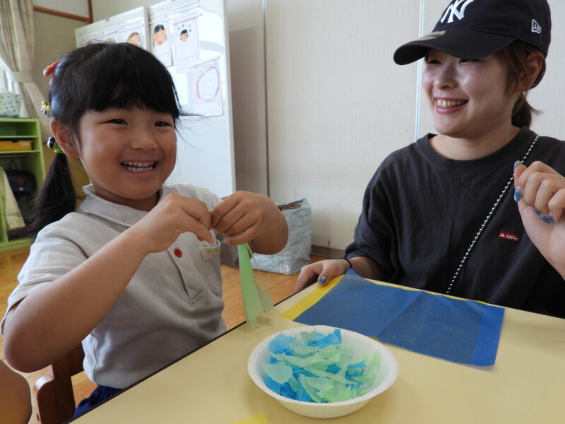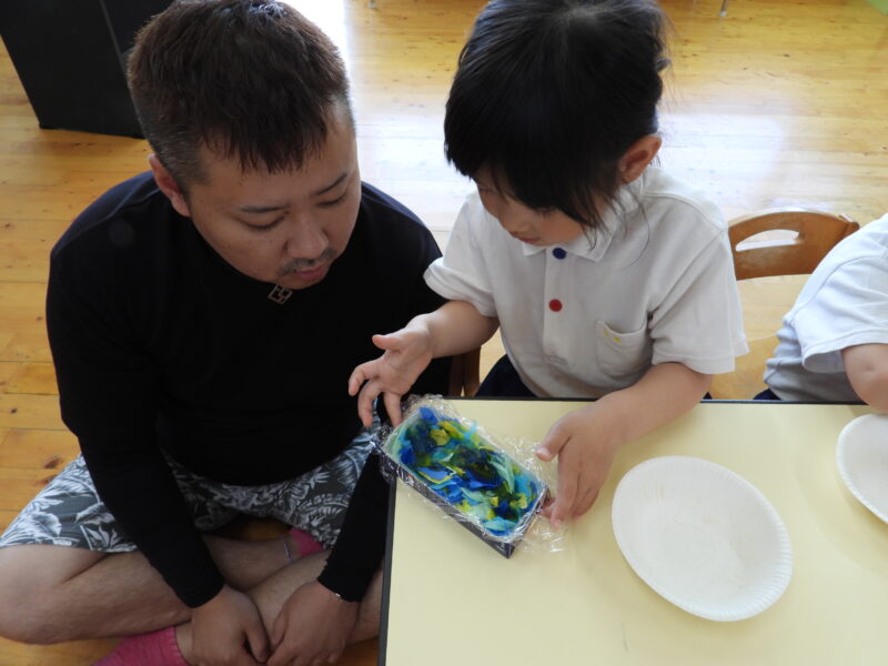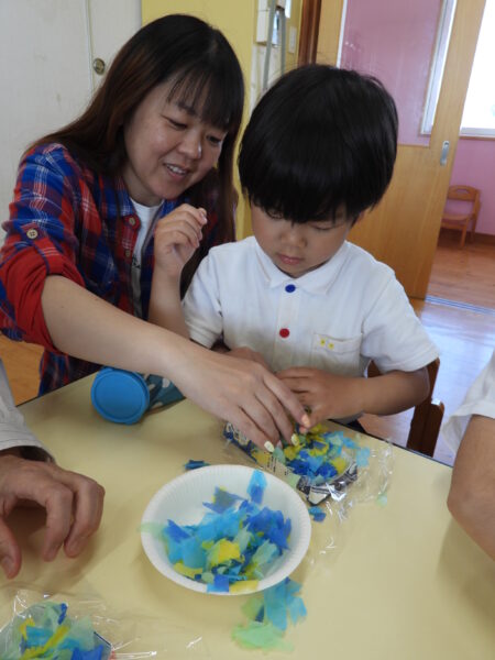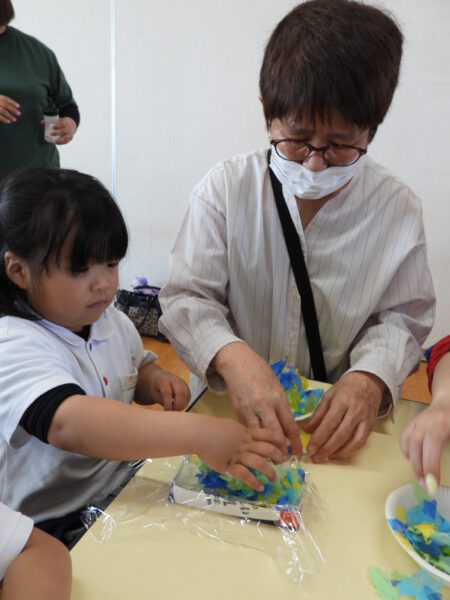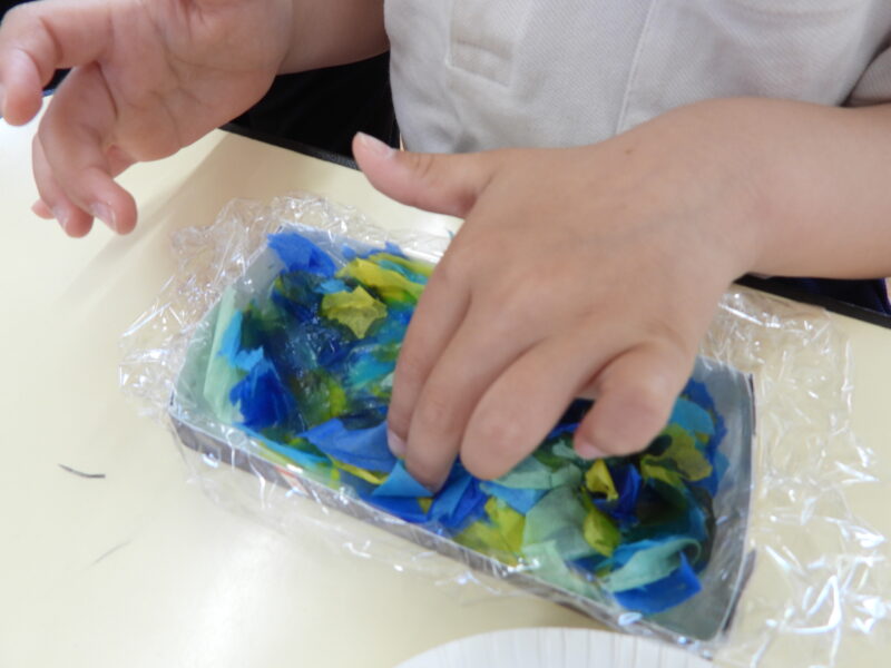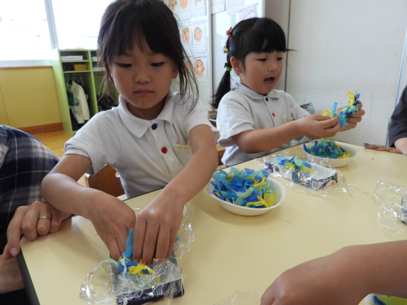 魔法の水と花紙を使って製作をしました