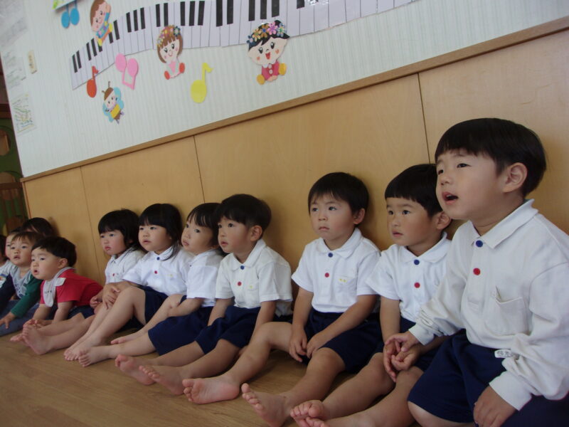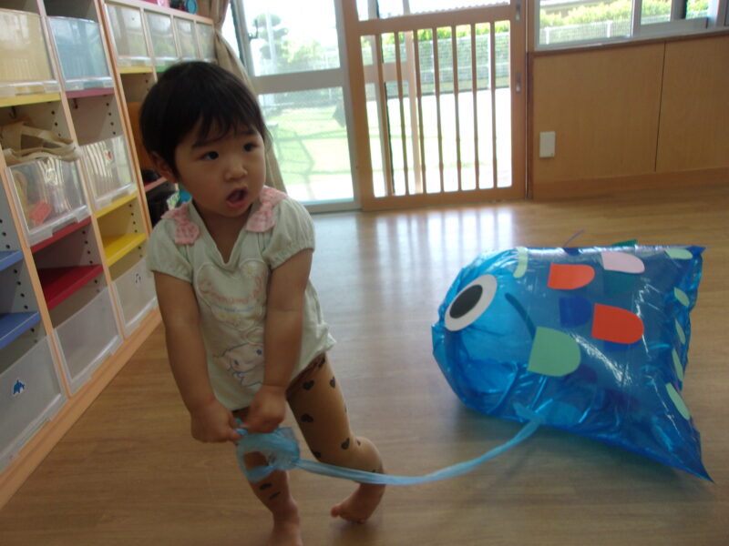 お部屋のゆらゆらこいのぼりを見て、「はやくあそびたい!」と子どもたち😊
